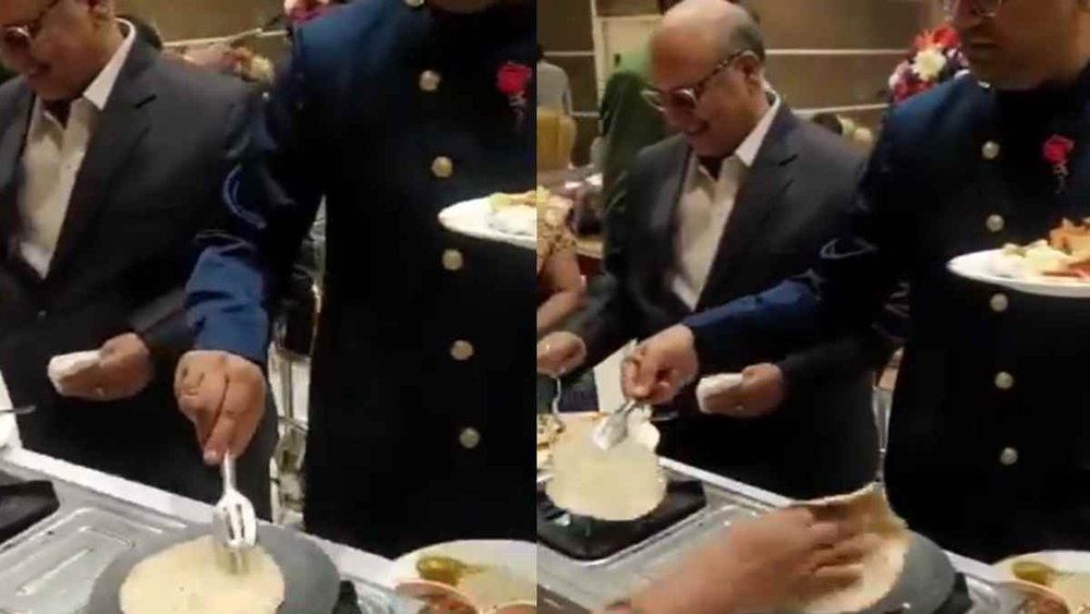 बताया जा रहा है कि वीडियो हाई प्रोफाइल शादी का है, जहां अपनाए गए नए ट्रेंड को देखकर लोग हैरानी जता रहे हैं। वीडियो में देखा जा सकता है एक शख्स रोटी बेलकर तवे पर रख रहा है और मेहमान तवे से रोटी उठाकर उसे सेंक रहे हैं और फिर अपनी प्लेट में रख रहे हैं। यह वीडियो देखकर लोग अपनी प्रतिक्रियाएं दे रहे हैं।