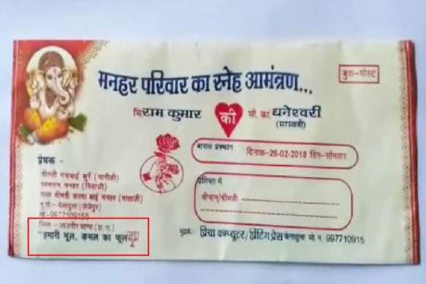 नौकरी छीने जाने पर एक शख्स ने विरोध का अनोखा तरीका अपनाया। पीड़ित ने अपनी शादी से पहले हाथ पर सरकार की आलोचना का स्लोगन लिखवाया। मेहंदी से उसने लिखवाया- हमारी भूल, कमल का भूल। दूल्हे ने इसी के साथ शादी के कार्ड पर भी यही स्लोगन छपवाया। आसपास के इलाकों और जिले में जब यह शादी का न्यौता पहुंचा तो शादी की चर्चा कम, कार्ड और स्लोगन की चर्चा अधिक हुई। बाद में किसी ने इसी का फोटो खींचकर सोशल मीडिया पर पोस्ट कर दिया, जो इस वक्त तेजी से वायरल हो रहा है। यह मामला छत्तीसगढ़ के जांजगीर-चांपा जिले का है। रामकुमार मनहर यहां के जैसेपुर ब्लॉक स्थित बेलादुला गांव में रहते हैं। 26 फरवरी को उनकी डरभाक के गोबरा गांव की रहने वाली धनेश्वरी से शादी हुई। रामकुमार ने इस बारे में कहा, “भाजपा सरकार की अनदेखी और व्यवस्था की नीति के कारण वह बेरोजगारी से जूझ रहे हैं।”