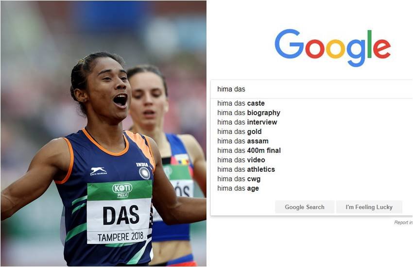 सोना जीतने के बाद गूगल सर्च में Hima Das ट्रेंड करने लगा, खासतौर पर उनकी जाति को लेकर अच्छे-खासे सर्च हो रहे थे। गूगल ट्रेंड्स के अनुसार, हिमा दास से जुड़ा सबसे ज्यादा सर्च किया जाने वाला दूसरा विषय उनकी जाति रही। इसमें असम, अरुणाचल प्रदेश से बड़ी संख्या में सर्चेज थे। ऐसा पहली बार नहीं है कि किसी चैंपियन की जाति में लोगों की दिलचस्पी हो। इससे पहले जब पीवी सिंधु ने रियो ओलंपिक में सिल्वर जीता था, तब भी गूगल पर उनकी जाति खूब सर्च की गई थी। तब अधिकतर सर्च करने वाले लोग आंध्र प्रदेश और तेलंगाना क्षेत्र के थे।