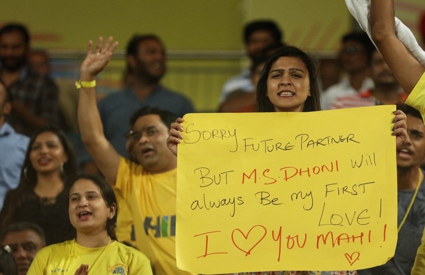 सोशल मीडिया में चेन्नई सुपर किंग्स के कप्तान महेंद्र सिंह धोनी की फीमेल प्रशंसक की एक तस्वीर तेजी से वायरल हो रही है, जिसे आईसीसी ने भी खुद अपने ट्विटर अकाउंट पर शेयर किया है। दरअसल वायरल तस्वीर में नजर आ रही लड़की शुक्रवार (20 अप्रैल, 2018) को राजस्थान रॉयल्स और चेन्नई के बीच खेले गए मैच में कप्तान धोनी की टीम का समर्थन करने पहुंची थी। इस दौरान यह लड़की एक खास पोस्टर लिए खड़ी रही। पोस्टर में लड़की ने अपने होने वाले पति से माफी मांगते हुए लिखा है कि महेंद्र सिंह धोनी हमेशा उसका पहला प्यार रहेंगे। पोस्टर में आगे लिखा गया है, ‘आई लव यू धोनी।’