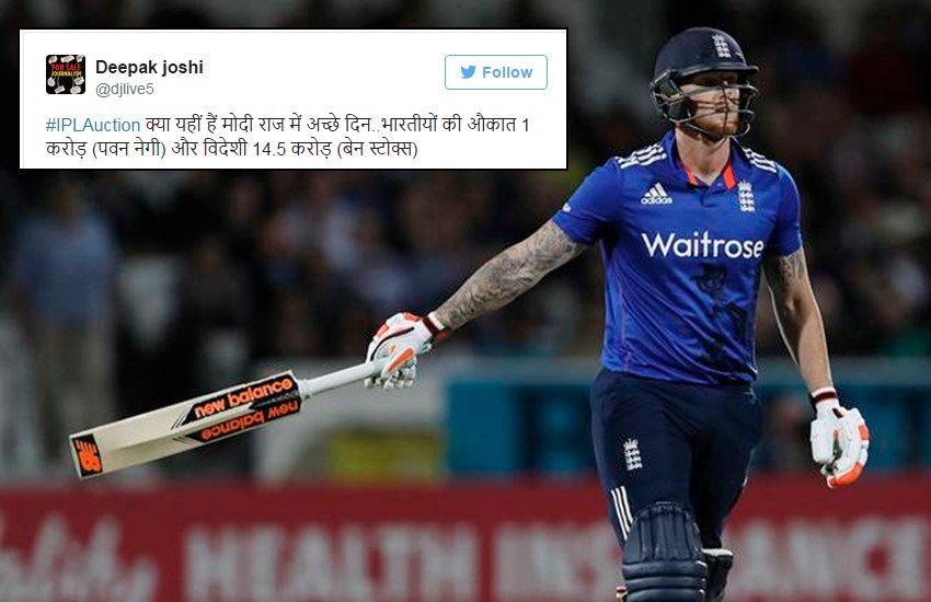 #IPLAuction क्या यहीं हैं मोदी राज में अच्छे दिन..भारतीयों की औकात 1 करोड़ (पवन नेगी) और विदेशी 14.5 करोड़ (बेन स्टोक्स)
