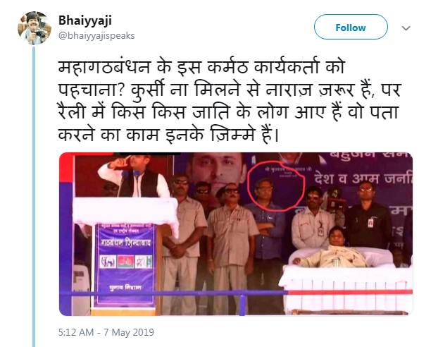 मंगलवार को उत्तरप्रदेश के जौनपुर में गठबंधन की संयुक्त रैली का आयोजन हुआ। इस रैली में सपा अध्यक्ष अखिलेश यादव के साथ ही बसपा सुप्रीमो मायावती भी मौजूद थीं। इस रैली में पत्रकार रवीश कुमार भी दिखाई दिए। इस रैली की एक तस्वीर सोशल मीडिया पर काफी दिखाई दे रही है। दरअसल इस तस्वीर में मायावती मंच पर बैठी हुई हैं, वहीं सपा अध्यक्ष अखिलेश यादव भाषण दे रहे हैं। इस दौरान रवीश कुमार मंच पर मायावती के पीछे खड़े दिखाई दे रहे हैं। इस तस्वीर पर सोशल मीडिया यूजर्स खूब ट्रोल कर रहे हैं।