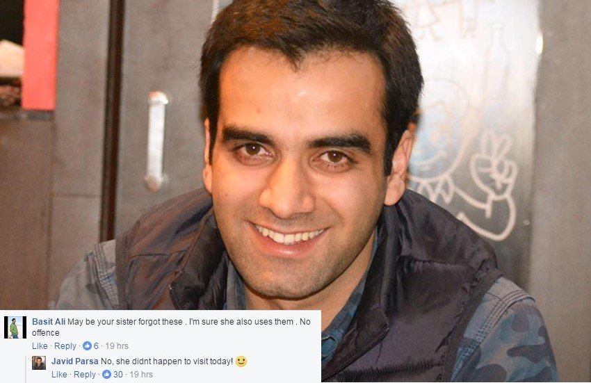 फेसबुक पर ‘सैनिटरी पैड’ से संबंधित पोस्ट लिखने पर एक कश्मीर कारोबारी को ट्रोल किया गया है। 27 वर्षीय जाविद पारसा श्रीनगर के एक मॉल में काठी जंक्शन के नाम से फूड आउटलेट चलाते हैं। एक दिन उनके फूड आउटलेट पर कोई सैनिटरी पैड का एक पैकेट भूल गया था, जिसकी कीमत करीब 1000 रुपए थी। इसके बाद पारसा ने फेसबुक पर लिखा था, ‘कोई अपने सैनिटरी पैड का पैकेट काठी जंक्शन पर छोड़कर चला गया है, जिसका भी है वह कल किसी भी टाइम आकर मेरे ऑफिस से इसे ले जा सकता है।’ इसके बाद जिसका यह पैकेट था, उसने पारसा को शुक्रिया कहा। लेकिन उसके बाद से उनकी पोस्ट पर गाली वाले कमेंट आने शुरू हो गए।