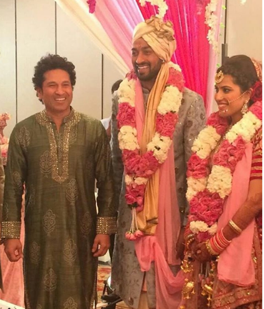 टीम इंडिया के कप्तान विराट कोहली के बाद एक और क्रिकेटर ने शादी रचा ली है। मुंबई इंडियन्स और बड़ौदा की तरफ से खेलने वाले क्रुणाल पांड्या ने 27 दिसंबर को मुंबई में अपनी प्रेमिका पंखुड़ी शर्मा के साथ सात फेरे लिये। हार्दिक पांड्या के भाई क्रुणाल पांड्या की शादी भी मुंबई के जुहू स्थित जेडब्ल्यू मैरियट होटल में हुई। क्रुणाल की शादी में क्रिकेट के भगवान कहे जाने वाले सचिन तेंदुलकर के साथ ही बॉलीवुड के महानायक अमिताभ बच्चन ने भी शिरकत की। क्रुणाल के शादी की तस्वीरें और वीडियोज सोशल मीडिया में आई है। क्रुणाल पंखुड़ी से ब्याह रचाने के लिए अपने भाई हार्दिक के साथ बुलेट से पहुंचे। हार्दिक बुलेट चला रहे थे और क्रुणाल बुलेट से जुड़ी बग्गी में बैठे थे। बारात में दूल्हा बहुत कम ही इस तरह से दिखता है।