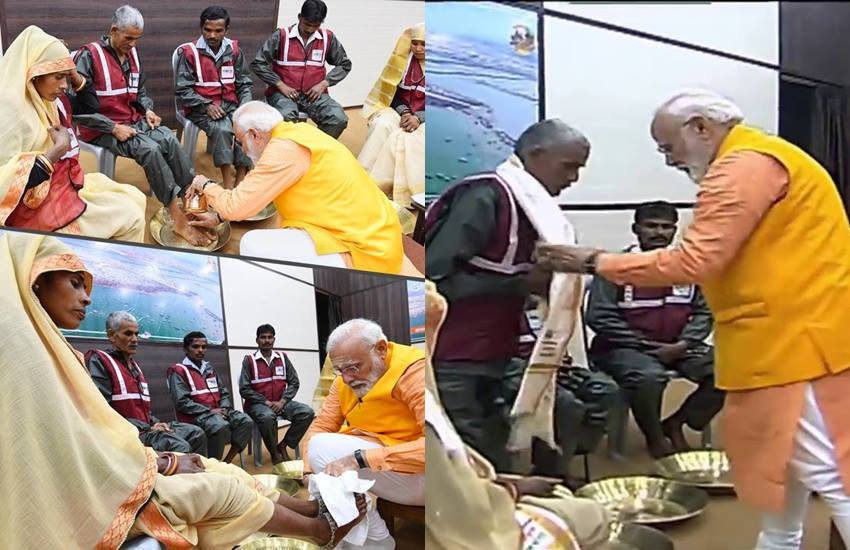 प्रधानमंत्री नरेंद्र मोदी ने रविवार (24 फरवरी) को कुंभ मेले में इतिहास रचते हुए पांच स्वच्छाग्रहियों के पांव पखारे। पीएम ने कुंभ मेले में उनके विशेष योगदान के लिए उन्हें सम्मानित भी किया। संगम में डुबकी लगाने के बाद गंगा पंडाल पहुंचे प्रधानमंत्री ने कहा, “आज जिन सफाईकर्मी भाइयों-बहनों के चरण धुलकर मैंने वंदना की है, वह पल मेरे साथ जीवनभर रहेगा। उनका आशीर्वाद, स्रेह, आप सभी का आशीर्वाद, आप सभी का स्रेह मुझपर ऐसे ही बना रहे, ऐसे ही मैं आपकी सेवा करता रहूं, यही मेरी कामना है।” मोदी के इस कदम की अपने-अपने हिसाब से व्याख्या हो रही है। एक तबका इसे “एक बड़ा राजनीतिक और सामाजिक संदेश” बता रहा है तो आलोचना इस बात पर हो रही है कि चरण धोनी की बजाय प्रधानमंत्री उनके लिए रोजगार की व्यवस्था क्यों नहीं करते।