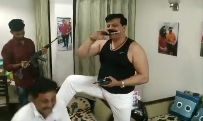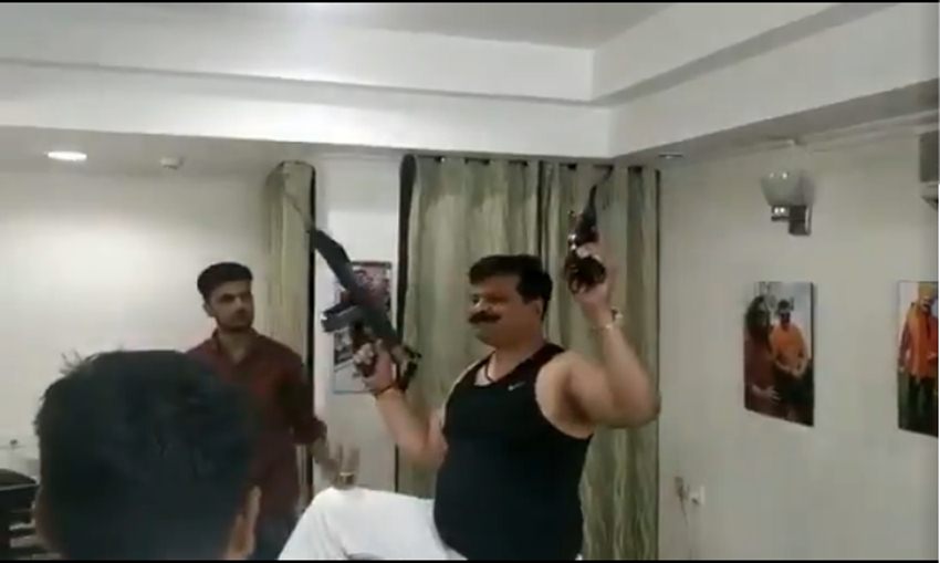वायरल हो रहे वीडियो में दिख रहा है कि प्रणव सिंह चैम्पियन अपने कुछ समर्थकों के साथ दारू पार्टी कर रहे हैं। बैकग्राउंड में गाना बज रहा है- छत पर सोया था बहनोई, मैं तने समझ के सो गई। गाने पर उनके समर्थक जहां झूम कर नाच रहे हैं वहीं विधायक जी खुद बंदूकों के साथ पोज दे रहे हैं। कभी मुंह में पिस्टल दबाए तो कभी दोनों हाथों में असलहों के साथ अपने समर्थकों की वाहवाही लूट रहे हैं।