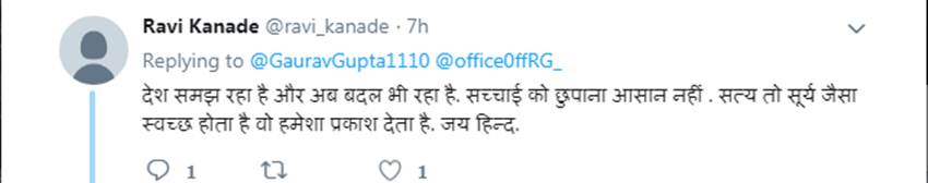 इसी तरह एक और यूजर ने लिखा, “देश समझ रहा है और अब बदल भी रहा है। सच्चाई को छुपाना आसान नहीं। सत्य तो सूर्य जैसा स्वच्छ होता है वो हमेशा प्रकाश देता है। जय हिन्द।”