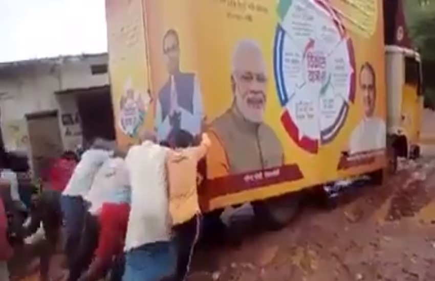 मध्य प्रदेश में विधानसभा चुनाव साल के अंत में प्रस्तावित है। ऐसे में राज्य में चुनावी सरगर्मियां भी तेज हो गई हैं। बीजेपी और कांग्रेस आक्रामक तरीके से चुनाव प्रचार कर रही है। मुख्यमंत्री शिवराज सिंह चौहान पिछले कई सप्ताह से जन आशीर्वाद यात्रा के तहत प्रदेश के विभिन्न क्षेत्रों का दौरा कर रहे हैं। राज्य सरकार कई बार प्रदेश में सड़क की हालत बेहतरीन होने का दावा कर चुकी है, जिसे विपक्षी कांग्रेस सिरे से खारिज कर चुकी है। अब सोशल मीडिया में एक वीडियो सामने आया है, जिसमें पीएम नरेंद्र मोदी और सीएम शिवराज सिंह चौहान की तस्वीरों वाला एक प्रचार वाहन गड्ढे में फंस गया। उसे निकालने के लिए लोगों को धक्का लगाना पड़ा। कांग्रेस के वरिष्ठ नेता और सांसद ज्योतिरादित्य सिंधिया ने इस पर चुटकी ली है। सिंधिया ने वीडियो पोस्ट करते हुए ट्वीट किया, ‘स्वर्णिम मध्य प्रदेश की अमेरिका से भी बेहतर सड़कों पर गड्ढों में फंसे शिवराज सिंह जी के 14 साल के विकास को धक्का लगाते मध्य प्रदेश के नागरिक।’ सीएम शिवराज कई मौकों पर कह चुके हैं कि मध्य प्रदेश की सड़कें अमेरिकी शहरों की सड़कों से भी बेहतर हैं। प्रदेश कांग्रेस अध्यक्ष कमलनाथ भी इसको लेकर मुख्यमंत्री पर तंज कस चुके हैं। कांग्रेस नेता ने एक बार कहा था कि शिवराज राज्य की सड़कों की तुलना महाराष्ट्र, गुजरात या देश के अन्य राज्यों से करें तो बात समझ में भी आए, लेकिन न जाने क्यों वह अमेरिका की रट लगाए रहते हैं।