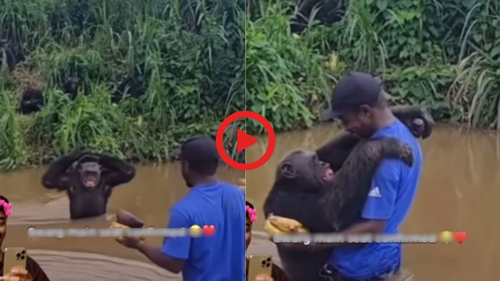 तभी एक शख्स झाड़ियों से सटकर बह रहे नहर में हाथों में फल लेकर घुसता है। शख्स को आता देख एक गोरिल्ला भी उसकी ओर बढ़ता है। वो शख्स के हाथ में रहे फल को लेता है और फिर खुश होकर उसे गले लगा लेता है। उसके हाव-भाव से स्पष्ट है कि वो फल पाकर काफी खुश है।