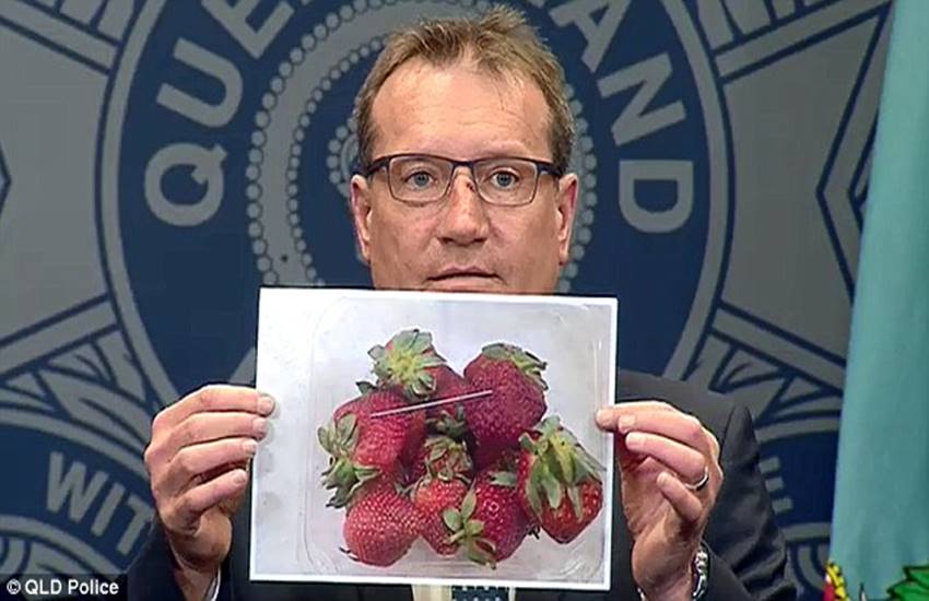 आपको बता दें कि यह कोई पहला मामला नहीं है जब फलों के अंदर ऐसी हानिकारक धातु मिलने की शिकायत सामने आई हो। हाल ही में क्वींसलैंड में स्ट्रॉबेरी के अंदर से सूई जैसी खतरनाक चीज निकलने की कुछ घटनाएं भी सामने आई थीं। स्ट्रॉबेरी से सूई निकलने की घटना पर्थ और न्यूजीलैंड में भी हुई थी। हंगामा मचने के बाद न्यूजीलैंड में एक मशहूर फूड डिस्ट्रीब्यूटर कंपनी को बाजार से अपने फल वापस लेने पड़े थे। इतना ही नहीं इस मामले में फेडरल हेल्थ मिनिस्टर ग्रेग हंट ने फूड सेफ्टी वॉचडॉग से पूरे मामले की जांच करने के आदेश भी दिये हैं।