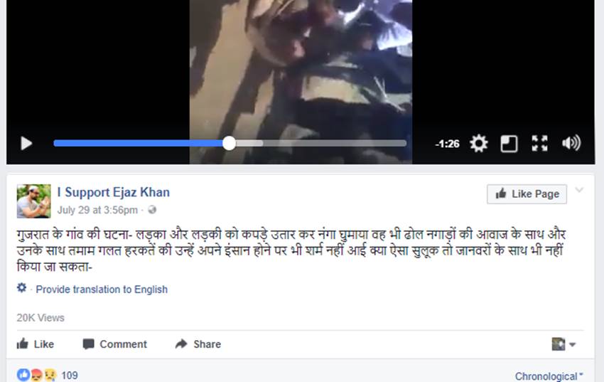 ये वीडियो जिसे गुजरात में दलितों पर अत्याचार का बता कर वायरल किया जा रहा है वो थोड़ा पुराना है। ये वीडियो गुजरात का है भी नहीं। वीडियो राजस्थान के बांसवाड़ा का है। 19 अप्रैल 2017 को यहां के शंभूपुरा गांव में एक प्रेमी युगल को निर्वस्त्र कर के गांव में घुमाया गया था और उन्हें पीटा भी गया था। वीडियो वायरल होते हुए स्तानीय पुलिस अधिकारियों तक पहुंचा और फिर इस मामले में 18 लोगों की गिरफ्तारी भी हुई थी।