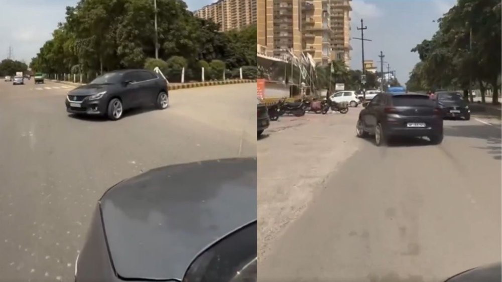 वायरल वीडियो की शुरुआत बलेनो कार से होती है जो मुख्य सड़क पर तेजी से दौड़ रही है और एक दूसरी गाड़ी इस स्टंटबाजी को रिकॉर्ड कर रही है। कार अचानक मुड़ती है, तेज रफ़्तार से आगे बढ़ती है और सड़क के किनारे रुक जाती है। अगले सीन में, वही कार फिर से वही स्टंट करती है और एक रिहायशी सोसाइटी के सामने अचानक रुक जाती है।