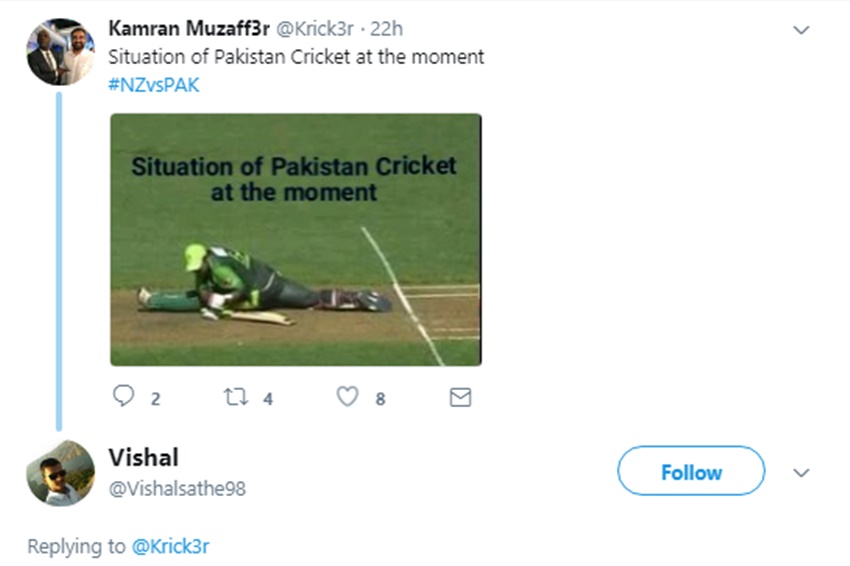 सोमवार को वेलिंगटन पाकिस्तान-न्यूजीलैंड का पहला टी-20 मैच था। पाकिस्तान ने 19.4 ओवर्स में 10 विकेट पर 105 रन बनाए थे। जवाबी पारी में कीवी टीम ने 15.5 ओवर में महज तीन विकेट के नुकसान पर 106 रन बना लिए। ऐसा कर न्यूजीलैंड ने यह मैच 7 विकेट से अपने नाम किया और सीरीज में 1-0 से बढ़त ले ली। मैच में हार-जीत से इतर एक और चीज भी देखने के लिए, जिस पर पूरी पाकिस्तानी क्रिकेट टीम की किरकिरी हुई।