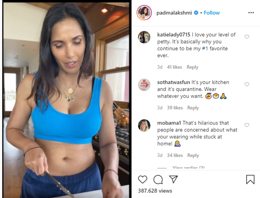 पद्मालक्ष्मी के सोशल मीडिया फैंस उनके इस जवाब को ट्रोल्स के मुंह पर करारा तमाचा बता रहे हैं। लोग लिख रहे हैं कि अगर इसी तरह से हर कोई कपड़ों पर कमेंट करने वालों के खिलाफ अपनी आवाज बुलंद करता रहेगा तो एक दिन इस तरह की घटिया हरकतों पर लगाम लग सकती है।