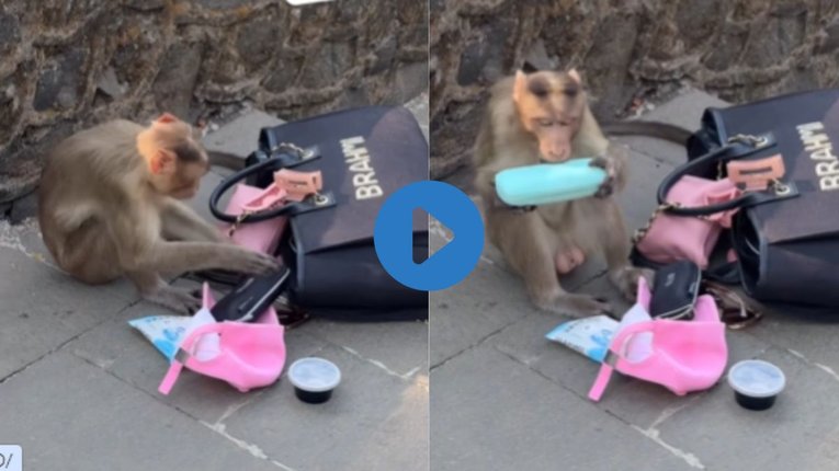 Shocking Viral Video: वीडियो में दिखाया गया है कि बंदर बैग में रखा सारा सामान बाहर बिखेर देता है। फिर…