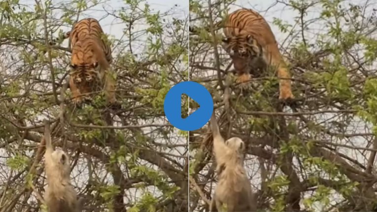 Tiger Viral Video: वीडियो में दिखाया गया है कि एक विशालकाल बाघ बंदर का शिकार करने के लिए पेड़ पर…