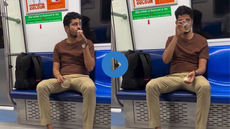 Delhi Metro Alcohol Drinking Video: वीडियो में दिखाया गया है कि एक शख्स जिसने टी-शर्ट और पैंट पहनी हुई है…