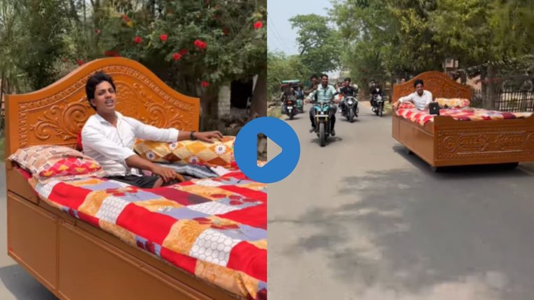 Man Converts bed Into Car Viral Video: वीडियो में देखा जा सकता है कि मैट्रेस बिछे हुए बेड पर शख्स…
