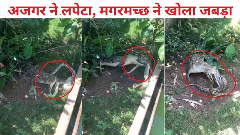 Crocodile python fight video viral: वायरल वीडियो में देखा जा सकता है कि मगरमच्छ और अजगर के बीच युद्ध छिड़ा…