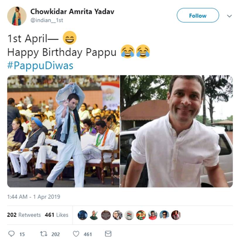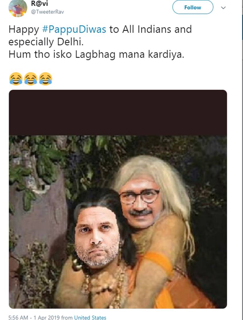 जैसे-जैसे लोकसभा चुनाव 2019 को लेकर वोटिंग की तारीखें नजदीक आ रही हैं वैसे-वैसे सोशल मीडिया पर भी सियासी रंग चढ़ता जा रहा है। कांग्रेस और बीजेपी समेत तमाम सियासी पार्टियों को लेकर कई तरह के व्यंग्य और प्रतिक्रियाएं सोशल मीडिया पर देखने को मिल रही हैं। आज 1 अप्रैल है और कई लोग इस दिन को ‘मूर्ख दिवस’ या ‘अप्रैल फूल’ के तौर पर भी मनाते हैं। माइक्रो ब्लॉगिंग साइट ट्विटर पर भी लोग इस दिन को खास अंदाज में मनाते नजर आ रहे हैं। ट्विटर पर ‘#पप्पू दिवस’ और ‘#मोदी मत बनाओ’ भी ट्रेंड कर रहा है।