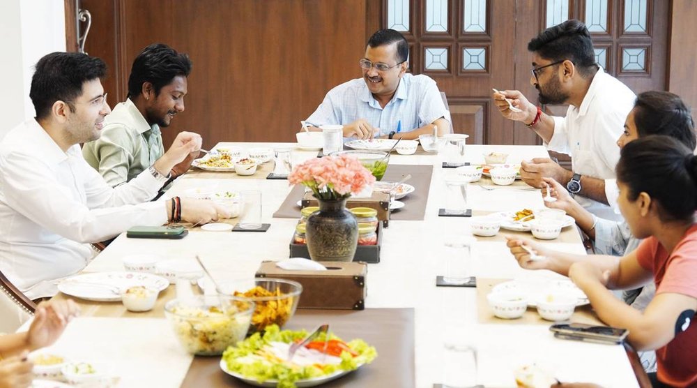 अरविंद केजरीवाल ने इस तस्वीर को शेयर कर लिखा कि, ‘गुजरात से आए हर सोलंकी के परिवार का अपने घर पर आदर सत्कार करने का सौभाग्य प्राप्त हुआ। हम दोनों के परिवारों ने साथ बैठकर खाना खाया। ईश्वर के पूरे परिवार को सुख – समृद्धि और खूब तरक्की दें।’ अरविंद केजरीवाल द्वारा शेयर की गई तस्वीर पर लोग कई तरह के सवाल पूछ रहे हैं तो वहीं कुछ यूजर्स ने चुटकी लेते हुए कमेंट किया है।
