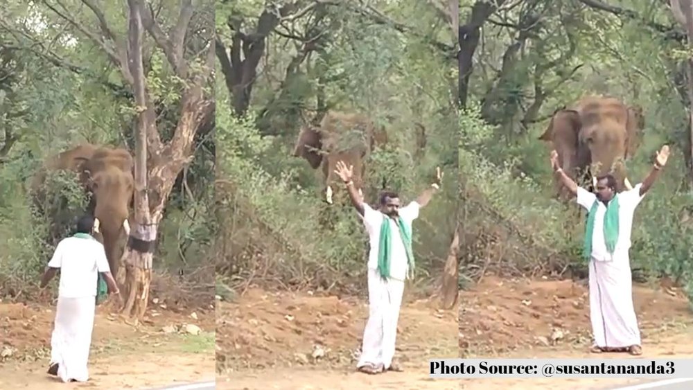 हाथी को आक्रामक देखकर लोग शख्स वापस बुलाने की कोशिश करते हैं लेकिन वह हाथी के आगे अपने दोनों हाथ उठाकर खड़ा हो जाता है। इस वीडियो को शेयर कर IFS अधिकारी सुशांत नंदा ने ट्वीट किया कि हाथी कोमल दानव है, जंगली हमेशा जंगली होता है, इन मूर्खतापूर्ण हरकतों की कोशिश मत करना।
