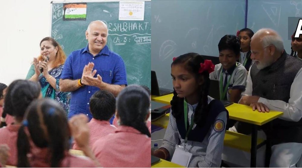 गुजरात दौरे पर पहुंचे प्रधानमंत्री नरेंद्र मोदी ने बुधवार को गांधीनगर में मिशन स्कूल ऑफ एक्सीलेंस की शुरुआत की। जिसके बाद वह छात्रों के बीच में पहुंचे और बच्चों के साथ एक क्लास रूम में बैठे। इसको लेकर आम आदमी पार्टी ने पीएम नरेंद्र मोदी पर निशाना साधा है। दिल्ली के उपमुख्यमंत्री मनीष सिसोदिया ने पीएम पर तंज कसा तो बीजेपी नेताओं ने पलटवार किया।