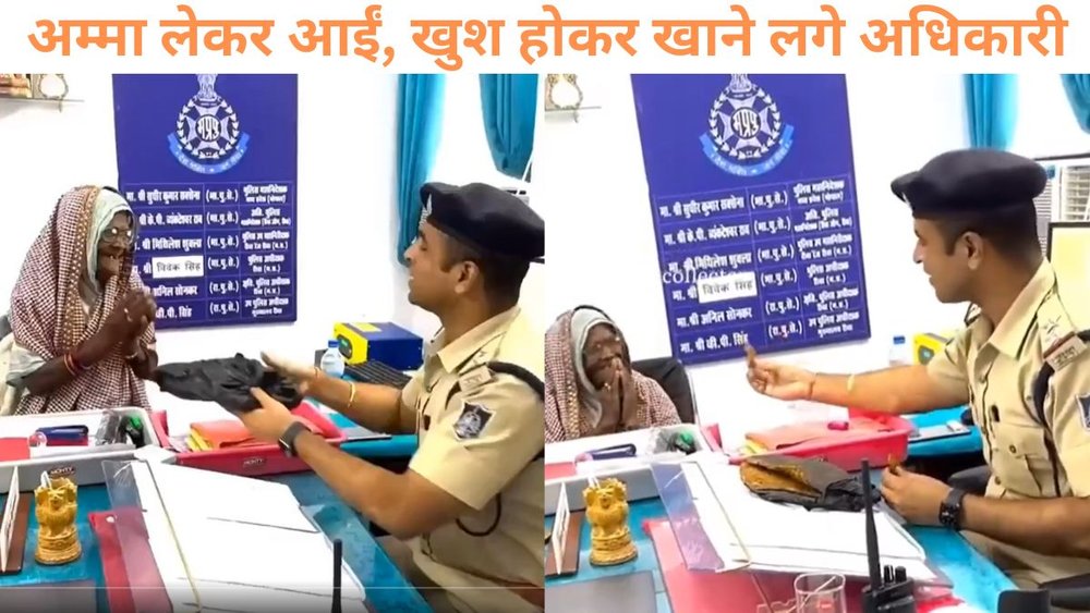Police Officer Viral Video: हमारे देश में ऐसे लोगों की जरूरत है, ऐसे पुलिस अधिकारियों को सैल्यूट है जो अपना फर्ज निभाते हुए इंसानियत को जिंदा रखते हैं। सोशल मीडिया पर इन दिनों दिल को छू लेने वाला एक वीडियो वायरल हो रहा है। वायरल वीडियो में देखा जा सकता है कि एक बुजुर्ग अम्मा पुलिस अधिकारी के ऑफिस के अंदर आती हैं। उनके हाथ में एक थैला है, अधिकारी अपनी सीट से उठकर अम्मा को बड़े आदर के साथ कमरे के अंदर अम्मा को कुर्सी पर बिठाते हैं। अम्मा बड़े ही स्नेह के साथ उनके हाथ में एक काले रंग का थैला रख देती हैं, जो वे अपने गांव से खास उनके लिए बनाकर आई हैं। एक तरह से यह एक मां की ममता है, आशीर्वाद है।