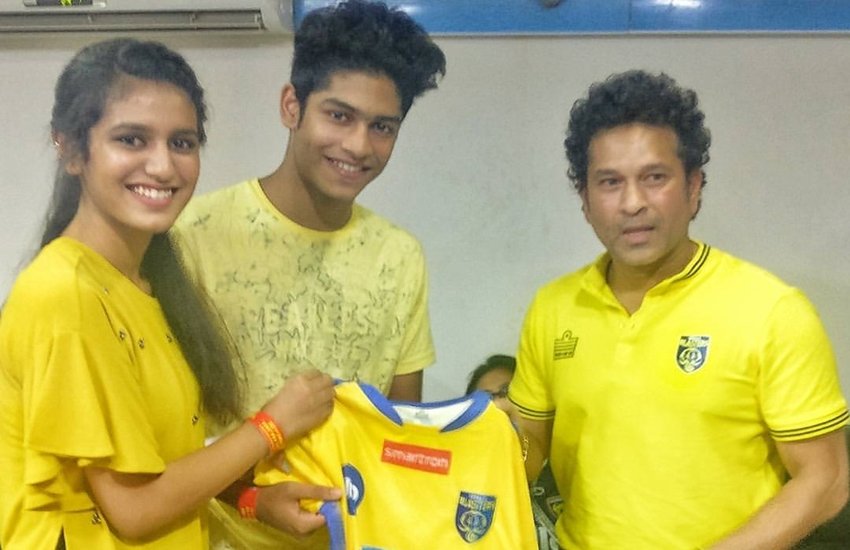 मलयालम फिल्म की एक्ट्रेस प्रिया प्रकाश वारियर पिछले कुछ दिनों से सोशल मीडिया में छाई हुई हैं। प्रिया प्रकाश के डेब्यू फिल्म ‘उरु आदर लव’ का एक गाना इंटरनेट पर इतनी तेजी से वायरल हुआ कि प्रिया रातों रात स्टार बन गई हैं। प्रिया की लोकप्रियता ने बहुत से नामी सितारों को पीछे छोड़ दिया है। इस वीडियो के बाद से ही प्रिया लगातार खबरों में बनी हुई हैं। शुक्रवार को प्रिया प्रकाश की मुलाकात क्रिकेट के भगवान कहे जाने वाले सचिन तेंदुलकर से हुई। प्रिया प्रकाश ने अपने ऑफिशियल ट्विटर हैंडल से सचिन तेंदुलकर के साथ एक फोटो भी शेयर की है। सचिन के साथ प्रिया की ये तस्वीर भी जमकर वायरल हो रही है। प्रिया ने अपने ट्विटर अकाउंट पर सचिन का एक वीडियो भी शेयर किया है जिसमें वो इंडियन सुपर लीग के केरला और चेन्नई के बीच के मैच को एन्जॉय कर रहे हैं। सचिन के साथ फोटो शेयर करते हुए प्रिया प्रकाश ने लिखा है कि लिजेंड इज हेयर। प्रिया ने सचिन के साथ जो फोटो शेयर की है उसमें उनके साथ उनकी अपकमिंग फिल्म के हीरो रोशन अब्दुल भी नजर आ रहे हैं।