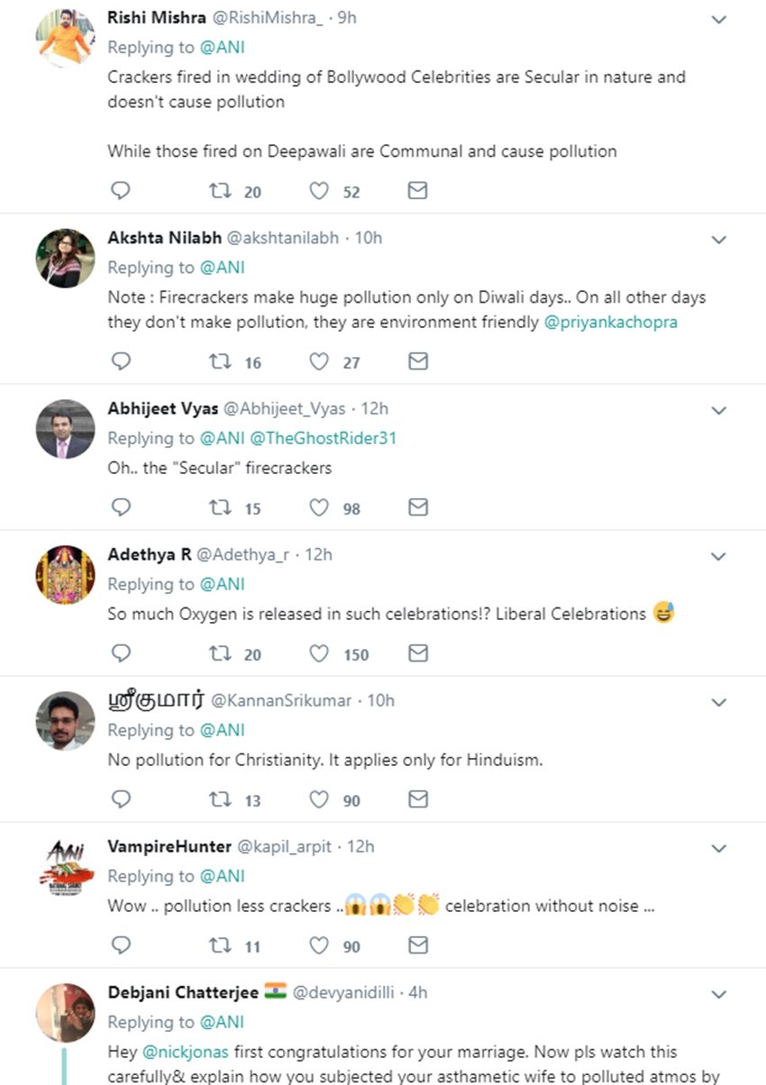 It’s not the hypocrisy of @priyankachopra “don’t use Crackers this diwali” and then this show at her wedding that’ll shock and disappoint you. What’ll anger you is that she sells this idea to everyone using her condition of Asthma, nothing but an emotional blackmail. Shameful. pic.twitter.com/r5dg9N93Nd