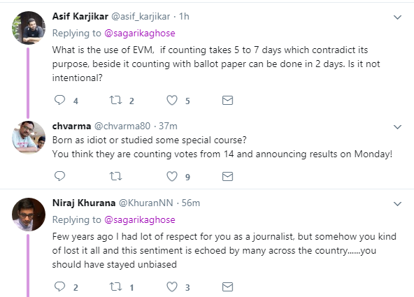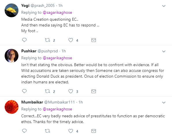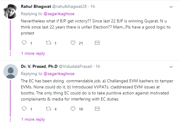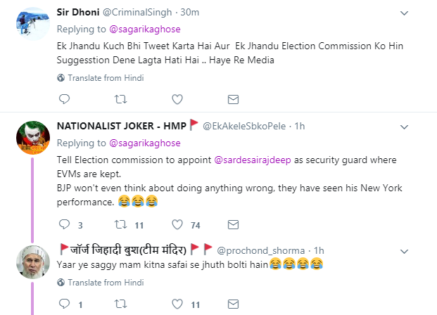 सागरिका के इस ट्वीट पर लोग उनपर ही टूट पड़े। कुछ लोग उनपर हार्दिक पटेल की चापलूसी करने के आरोप लगाने लगे तो कुछ लोग उनपर निजी हमले करने लगे। लोगों ने लिखा कि एक बेवकूफ कुछ भी लिख रहा है और दूसरा बेवकूफ चुनाव आयोग पर ही उंगली उठा रहा है।