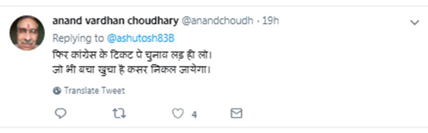 याद दिला दें कि आशुतोष ने 14 अगस्त 2018 को पार्टी से इस्तीफा दे दिया था। हालांकि, पीएसी ने उनका त्यागपत्र नहीं कबूला। आप के संयोजक और दिल्ली के मुख्यमंत्री अरविंद केजरीवाल ने जवाब में कहा था- हम कैसे आपका इस्तीफा स्वीकार सकते हैं? न, इस जन्म में यह संभव नहीं है।