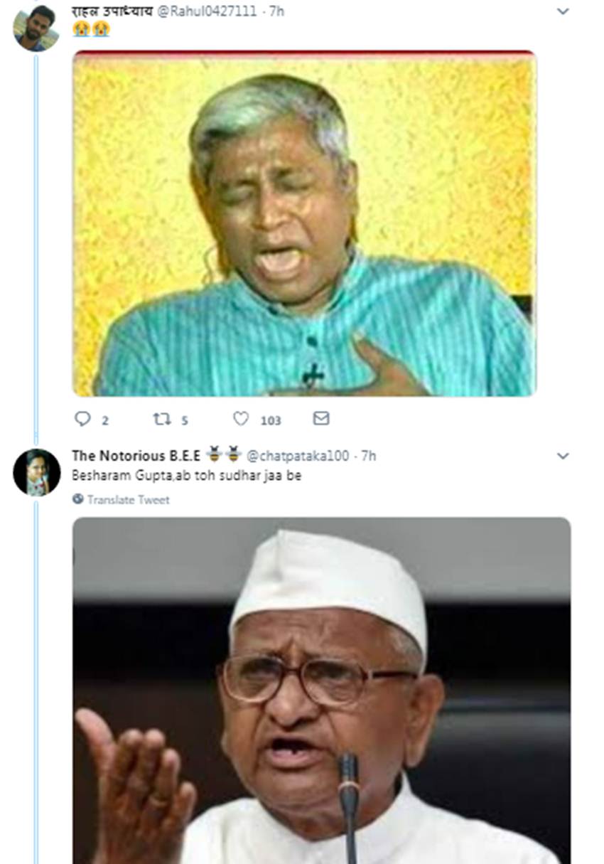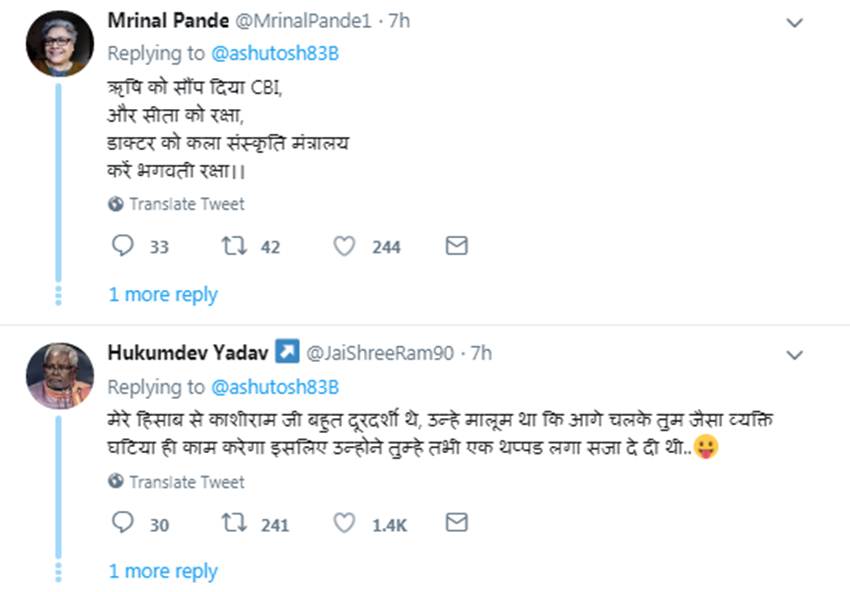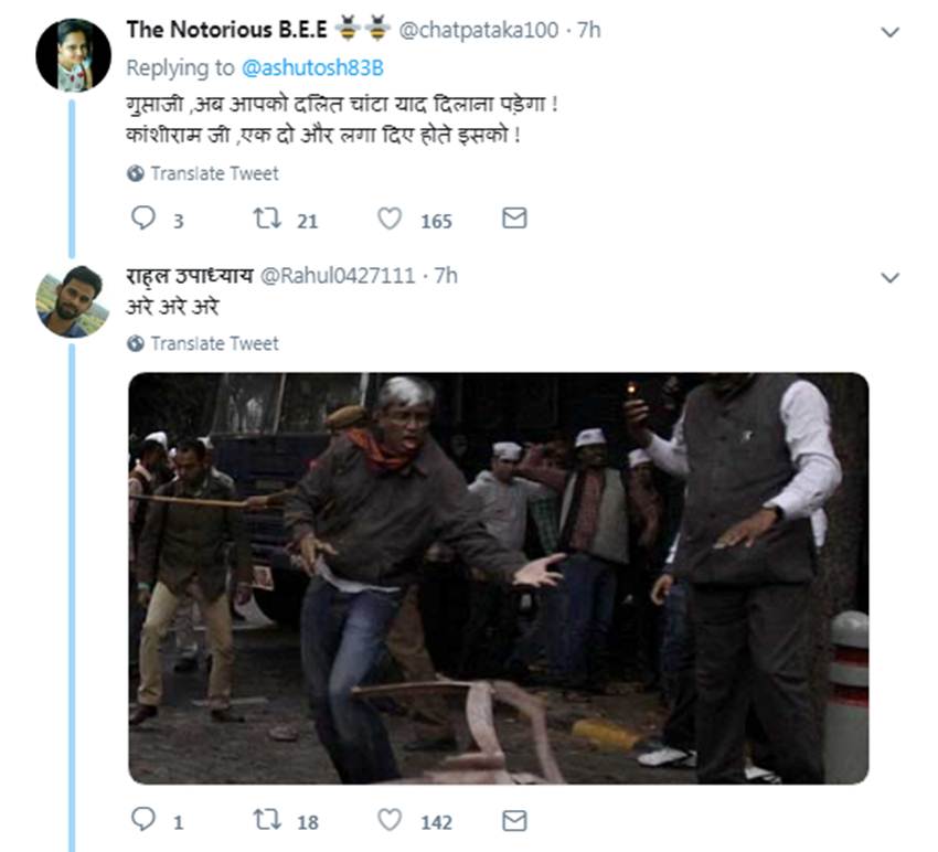 वरिष्ठ पत्रकार के इस ट्वीट पर अधिकतर सोशल मीडिया यूजर्स ने उनकी जमकर क्लास लगाई। कुछ लोगों ने आशुतोष के साथ घटे पुराने वाकये का जिक्र किया, जिसमें दलितों के लिए आवाज उठाने वाले दिवंगत नेता कांशीराम ने उन्हें थप्पड़ जड़ दिया था। वहीं, कुछ ने आशुतोष के हैरान परेशान हाव-भाव वाले फोटो शेयर कर उनके मजे लिए। देखें, लोगों की प्रतिक्रियाएंः