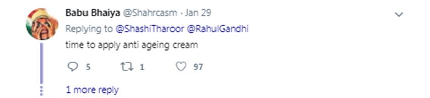 इसके बाद एक दूसरे यूजर ने राहुल को एंटी एजिंग क्रीम लगाने की सलाह दे डाली।