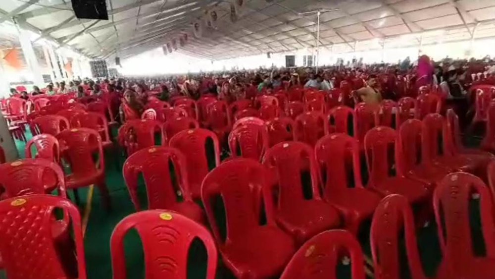 बता दें कि सीएम शिवराज ने सलकनपुर देवी लोक महोत्सव में हुए शामिल देवी मंदिर में की पूजा अर्चना की। उनके साथ पत्नी साधना सिंह बेटे कार्तिकेय भी मौजूद थे। 200 करोड़ से अधिक की लागत से देवी लोक का निर्माण सरकार करवाने जा रही है। इसी कार्यक्रम का वीडियो शेयर कर दावा किया जा रहा है कि जितनी उम्मीद जताई गई थी, उतनी भीड़ नहीं आई। इसी वजह से कुर्सियां खाली रहीं।