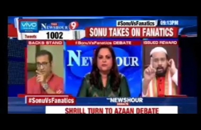 मौलवी सैयद शा आतिफ अल कादरी से जब एंकर ने कहा कि अब तो सोनू निगम ने बाल छिलवा लिये हैं तो आपको उन्हें 10 लाक रुपए दे देने चाहिए। इस पर कादरी ने कहा कि पहले उनको जूतों की माला पहन कर पूरे देश में घूमना पड़ेगा उसके बाद मैं पैसे दूंगा। मौलवी की इस बात पर सिंगर अभिजीत का पारा चढ़ गया। उन्होंने मौलवी पर हमला बोलते हुए पूछा कि तुम्हारे घर में कितनी बीवियां हैं..उन सबका खर्च कैसे चलाते हो। तुम्हारी औकात ही नहीं है कि तुम 10 लाख दे सको।