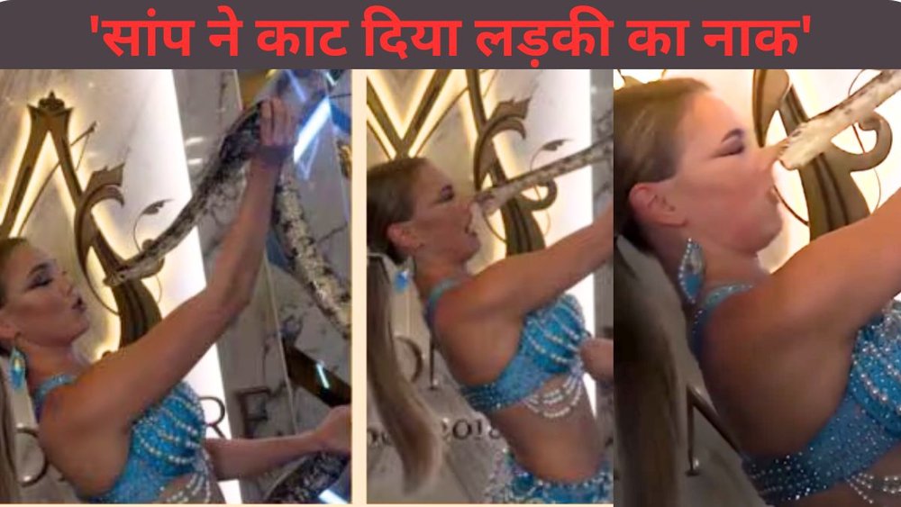 सांप के कई वीडियो सोशल मीडिया पर वायरल होते रहते हैं, ऐसा ही एक वीडियो इन दिनों चर्चा में है। वीडियो में दिख रहा है कि एक महिला डांसर सांप के साथ फोटो खिंचवाने के लिए किस करने वाला पोज दे रही है, तभी अचानक उसके नाक पर वह काट लेता है। सांप अचानक लड़की की नाक को अपने दातों में ले लेता है। वह लड़की की नाक पर अपने दांत गड़ा देता है, इसके बाग वह दर्द से चिल्लाने लगती है मगर फिर भी वह सांप को आराम से नीचे जमीन पर रखती है।