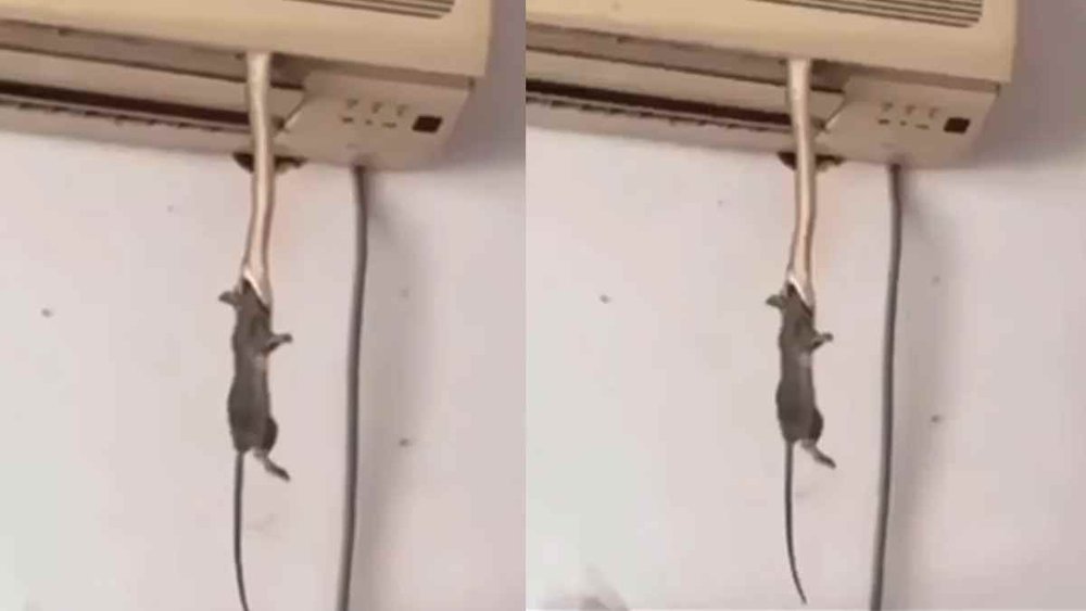 एक शख्स अपने कमरे में AC ऑन कर सो रहा था, इसी दौरान एक सांप उसमें से निकलता है और चूहे पर हमला कर देता है। सांप चूहे को पकड़कर वापस एसी में घुस गया, जिसका वीडियो सोशल मीडिया पर वायरल है। सांप स्पिलिट AC में चूहे को लेकर जाता दिखाई दे रहा है।