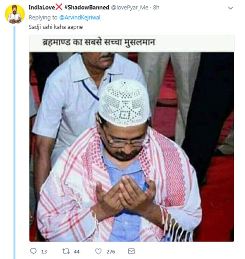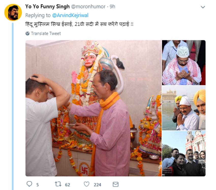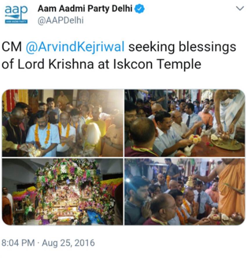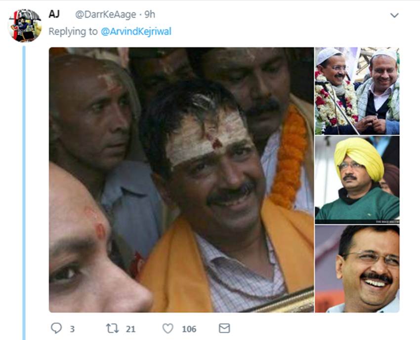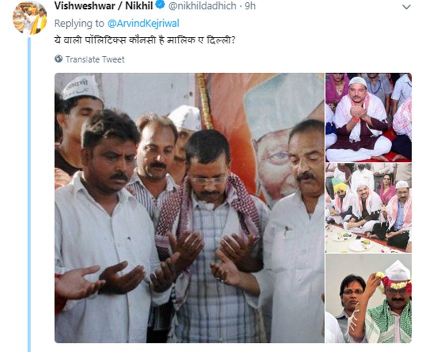 दिल्ली के मुख्यमंत्री और आम आदमी पार्टी (आप) के संयोजक अरविंद केजरीवाल रविवार (16 सितंबर) को सोशल मीडिया यूजर्स के निशाने पर आ गए। वह प्रधानमंत्री नरेंद्र मोदी और कांग्रेस अध्यक्ष राहुल गांधी पर निशाना साधना चाह रहे थे। केजरीवाल ने दोनों ही राजनेताओं के मंदिर-मस्जिद जाने को लेकर सवाल उठाया था। साथ ही कहा था कि मंदिर-मस्जिद से राष्ट्रनिर्माण नहीं होने वाला है। जवाब में सोशल मीडिया यूजर्स ने केजरीवाल की वे तस्वीरें पोस्ट करना शुरू कर दिया, जिसमें वह भी किसी धर्म स्थल पर पहुंचे हुए थे। सीएम किसी में टोपी लगाए थे, तो कहीं पर उनके गले में माला डली हुई थी।
