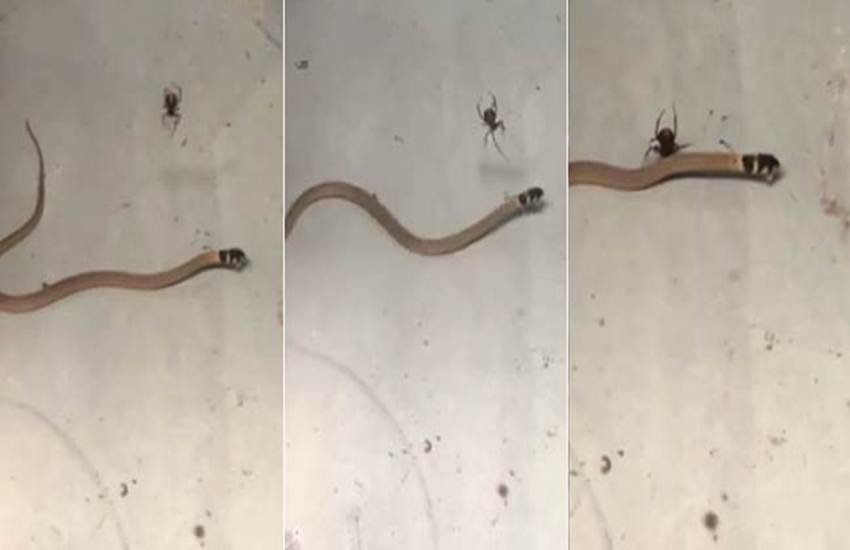 वीडियो में दिखाई दे रहा है कि एक ऑस्ट्रेलियन वेयर हाउस में सांप मकड़ी के जाले में फंस जाता है। जैसे ही हम अपने घर में आए बिना बुलाए मेहमान को पसंद नहीं करते। उसी प्रकार इस मकड़ी को भी बिना बुलाए घर में घुसे सांप का आना पसंद नहीं आता है। जिसके बाद दोनों के बीच जंग शुरू हो जाती है। सांप मकड़ी के जाल में फंस जाता है और गुस्साई मकड़ी सांप के करीब जाकर लगातार हमला करती है। यह लड़ाई कहां खत्म होती है इस बात का पता नहीं चल पाता है।
