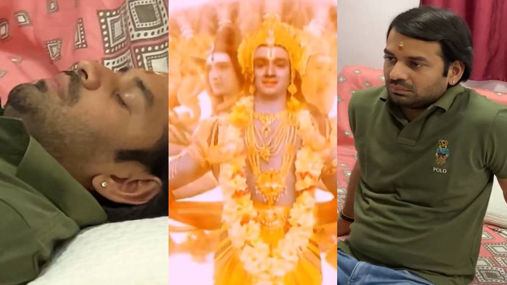 तेज प्रताप यादव ने वीडियो शेयर करते हुए यह दिखाने की कोशिश की है कि उनके सपने में ईश्वर आये थे। इस वीडियो में पहले तेज प्रताप यादव सोते नजर आ रहे हैं और आगे वडियों में महाभारत सीरियल का क्लिप लगाया गया है। जिसमें कई देवी-देवताओं के साथ कृष्ण दिखाई दे रहे हैं। कुछ देर में ही अचानक तेज परताप उठ जाते हैं। अब यह वीडियो सोशल मीडिया पर तेजी से वायरल हो रहा है।