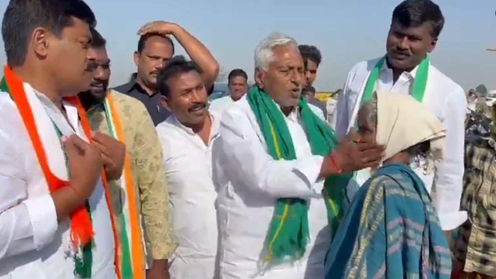 गांव में कांग्रेस के नेताओं ने कुछ मजदूरों से मुलाकात की। इसी दौरान जीवन रेड्डी और विनय कुमार रेड्डी इस बुजुर्ग महिला से मिले। महिला ने बातचीत के दौरान फूल के निशान यानि कि बीजेपी को वोट देने की बात कह दी। तभी जीवन रेड्डी ने महिला को थप्पड़ मार दिया और उसके बाद जोर से हंसने लगे।