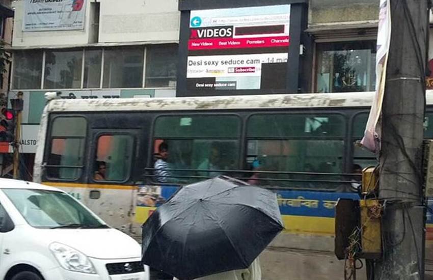@Mumbaekar टि्वटर अकाउंट से एक फोटो पोस्ट हुई है। इसमें दिख रहा है कि स्क्रीन पर एक्स वीडियोज की एक क्लिप चल रही है। हालांकि इसकी सत्यता की पुष्टि नहीं हो पाई है। फोटो के साथ लिखा गया है, ”कारवे रोड..पुणे..लाइव एक्सवीडियोज” इस तस्वीर में दिख रहा है कि एक व्यक्ति स्क्रीन की ओर देख भी रहा है। यह व्यक्ति छाता थामे हुए जेब्रा क्रॉसिंग पर खड़ा हुआ है। इससे पहले इसी तरह की एक घटना पिछले साल केरल में बस स्टैंड पर हुई थी। वहां पर पूरी पॉर्न फिल्म चला दी गई थी। इस दौरान आवाजें भी साफ सुनाई दे रही थी।