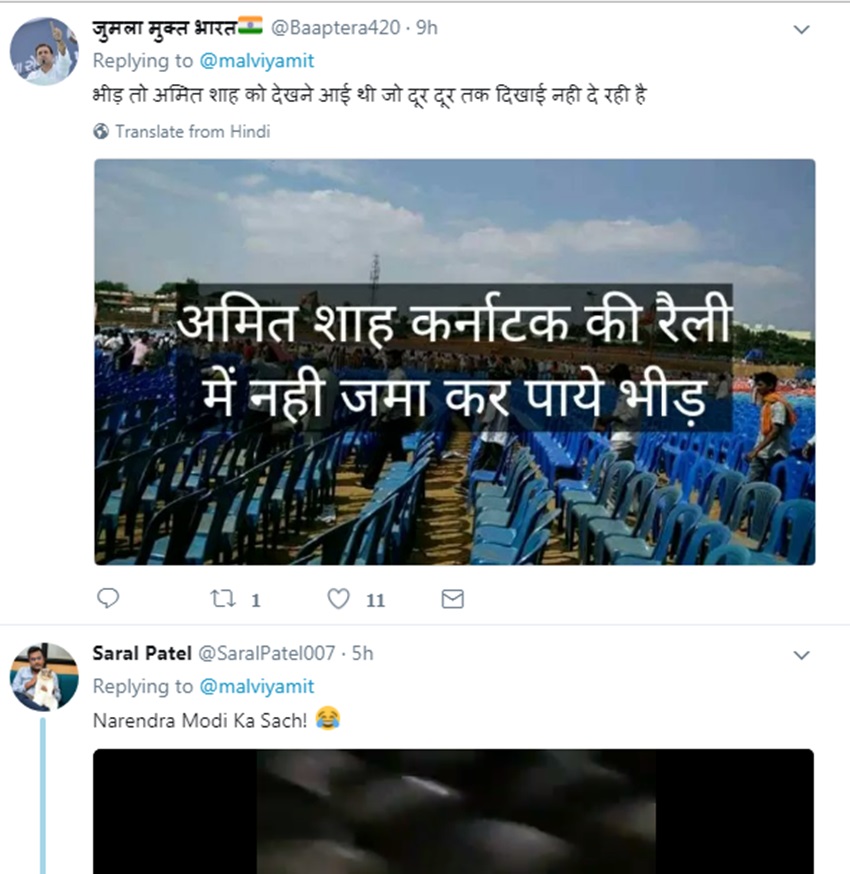 मालवीय का यह ट्वीट गुजरात और हिमाचल प्रदेश के विस चुनाव के नजदीक आया है। प्रधानमंत्री नरेंद्र मोदी इस दौरान तमाम रैलियां कर रहे हैं, जहां भारी भीड़ जुटती है। उधर, कांग्रेस की ओर से राहुल भी कोई कसर नहीं छोड़ते दिख रहे। वह भी गुजरात के तीन दिवसीय दौरे पर थे, जहां उन्होंने रैलियों में मोदी सरकार और उनके गुजरात मॉडल पर तंज कसा था। ऐसे में माना जा रहा है कि मालवीय ने अपने ट्वीट और वीडियो में यही दिखाना चाहा कि राहुल गांधी की रैली में सन्नाटा पसरा रहता है। अंधेरा छाया रहता है और कुर्सियां खाली रहती हैं। लेकिन वीडियो देखने से कहीं से भी नहीं लगता है कि वह राहुल गांधी का रैली स्थल है।