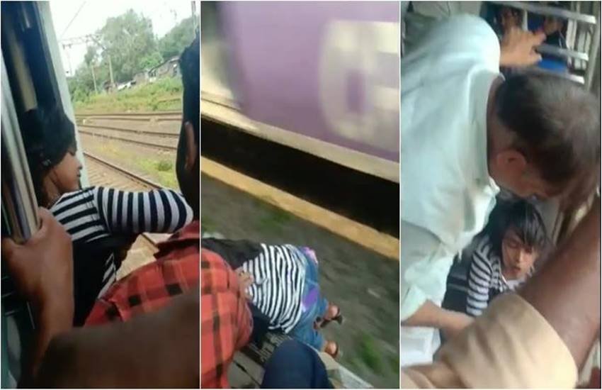 ट्रेन में सफर के दौरान यह बेहद जरूरी है कि किसी भी प्रकार के हादसे से बचने के लिए यात्री पूरी सावधानी बरतें। चलती ट्रेन में जरा सी चूक आपको भारी पड़ सकती है। मुंबई में एक महिला ने चलती ट्रेन में लापरवाही बरती और उसके साथ बड़ा हादसा हो गया। इस महिला की किस्मत अच्छी थी कि ट्रेन में सफर कर रहे सहयात्रियों ने उसे बचा लिया। यह महिला मुंबई की एक लोकल ट्रेन में सफर कर रही थी तब ही अचानक उसका पांव फिसल गया और वो ट्रेन से नीचे गिर गई। इस घटना का एक वीडियो भी सोशल मीडिया पर तेजी से वायरल हुआ है। वायरल वीडियो में नजर आ रहा है कि ट्रेन पूरी रफ्तार में है और यह महिला ट्रेन के पायदान पर खड़े होकर सफर कर रही है। तब ही दूसरी पटरी पर एक और ट्रेन गुजरती है।
