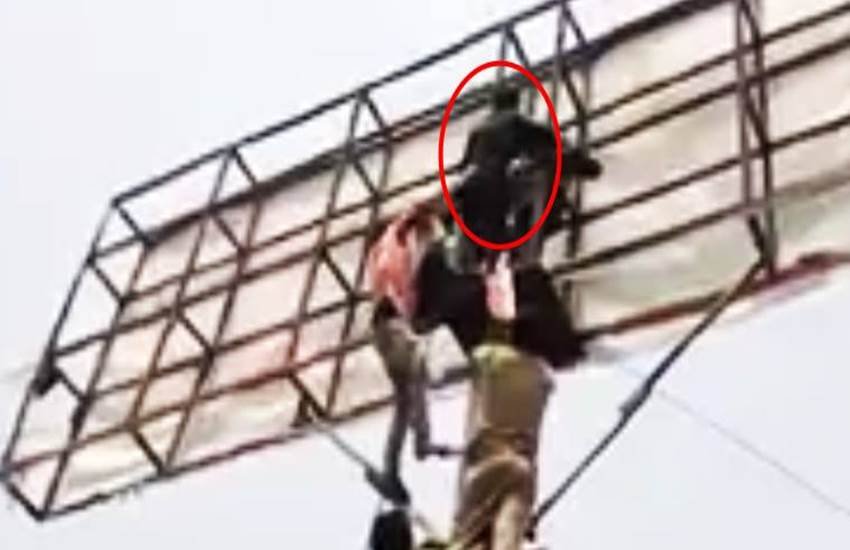 हिंदुस्तान टाइम्स की रिपोर्ट के मुताबिक गाजियाबाद के लोनी में 21 साल का हारुन नाम का शख्स अपनी पूर्व मंगेतर को वापस लाने की कोशिश में होर्डिंग वाले यूनीपोल (30 फुट उंचे) पर चढ़ गया। लड़की से सगाई टूटने के बाद युवक ने उसे वापस लाने के लिए यह सब किया। पुलिस के मुताबिक महिला पर शादी का दबाव बनाने के लिए उसने यह स्टंट किया। इस घटना के सामने आने के बाद लोगों की भीड़ लग गई। हालांकि उसको नीचे उतारने में पुलिस और स्थानीय लोगों को खासी दिक्कत का सामना करना पड़ा। नीचे उतारते समय वह अपनी पकड़ खो बैठा और नीचे गिरते-गिरते बचा। सोशल मीडिया पर इस घटना का वीडियो शेयर किया जा रहा है।