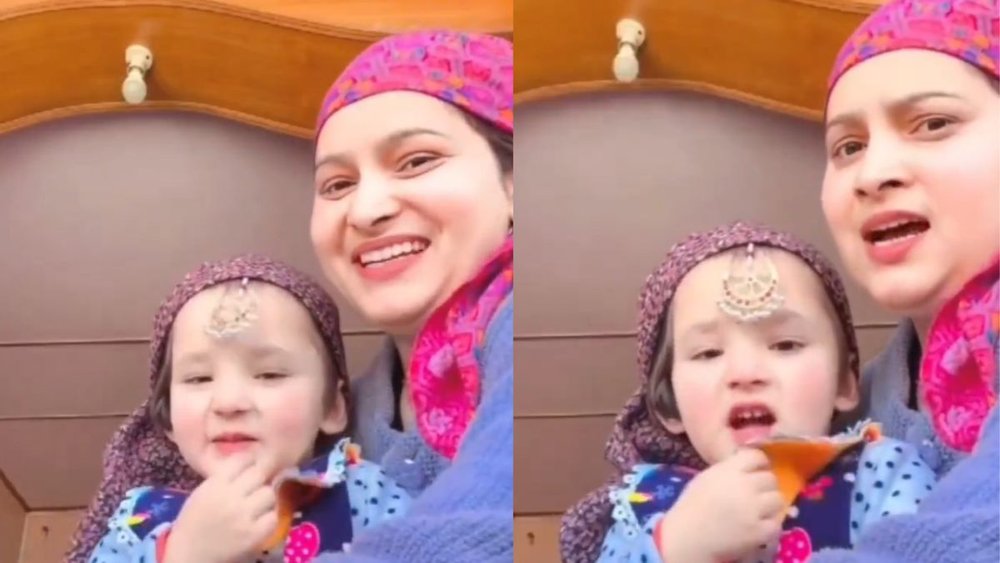 Geeta Bhardwaj Viral Video: शिमला की सुप्रसिद्ध गायिका गीता भारद्वाज का एक वीडियो सोशल मीडिया पर जमकर वायरल हो रहा है। वीडियो में वो अपनी प्यारी सी बेटी के साथ गाना गाते दिख रही हैं। वीडियो में देखा जा सकता है कि बेटी अपनी गायिका मां को गाने से रोक रही है और खुद सुर लगाने की कोशिश कर रहे रही है।