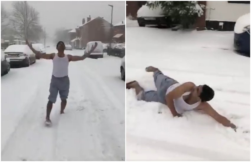 इस वक्त भारत में ही नहीं बल्कि पूरे विश्व में कड़ाके की ठंड पड़ रही है। भारत में तो कई इलाकों में बर्फबारी हो ही रही है वहीं अमेरिका जैसे देशों में भी सड़कें बर्फ से पट चुकी हैं। इस मौसम में जहां लोग घर से बाहर निकलने से पहले कई बार सोचते हैं, जहां लोगों की कोशिश रहती है कि वह ज्यादा से ज्यादा समय घर की गर्माहट में बिताएं वहीं एक ऐसा शख्स भी है जो बर्फ में नंगे पैर डांस करना पसंद करता है। सोशल मीडिया पर इस वक्त एक वीडियो काफी वायरल हो रहा है जिसमें एक शख्स बिना ठंड के कपड़े पहने बर्फ में डांस कर रहा है और बैकग्राउंड में अजब प्रेम की गजब कहानी फिल्म का गाना ‘आजा ओ मेरी तमन्ना…’ बज रहा है। हम और आप बिना गर्म कपड़े पहने बर्फ में जाने के बारे में कल्पना भी नहीं कर सकते, लेकिन इस शख्स ने केवल एक बनियान और शॉर्ट्स पहने हुए डांस कर डाला। इतना ही नहीं वीडियो के अंत में इस शख्स ने कहा कि, ‘सर्दी से डर नहीं लगता साहब, गर्मी से लगता है।’