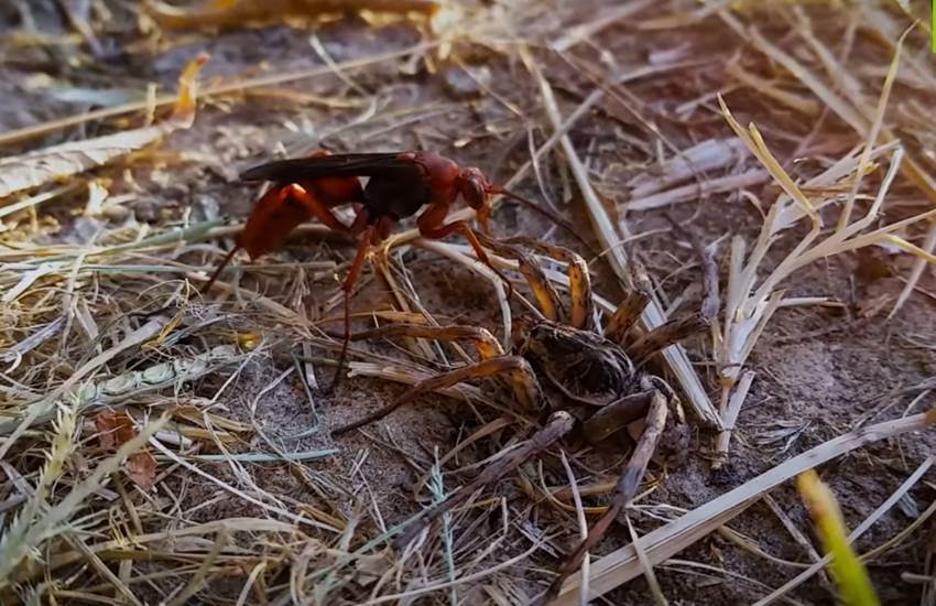 एक फोटोग्राफर ने अपने कैमरे में ऐसी तस्वीर कैद की है जो काफी वायरल हो रही है। फोटो में दिखाया गया है कि किस तरह एक मकड़ी अपनी जान लाल बर्रेया से बचा रही है। बर्रैया मकड़ी पर बार-बार हमला कर रही है, लेकिन वो हर बार अपनी जान बचाने में कामयाब हो रही है। दरअसल, केनेथ गिस्सी ने टेक्सास स्थित अपने गार्डन में लाल बर्रैया और मकड़ी पर एक फिल्म बनाई है। वीडियो में देखा जा सकता है कि मकड़ी लकवाग्रस्त है और उसके पेट में अंडा है, जिसको शिकार बनाने के लिए बर्रैया अपने नुकेले डंक से मकड़ी पर हमला कर रही है।