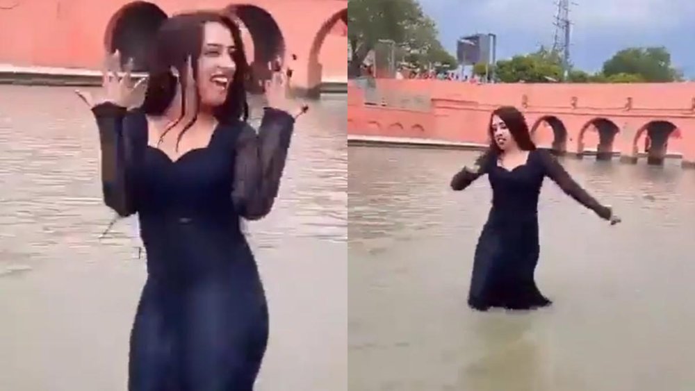 अयोध्या में हरी की पैड़ी में नहाते हुए डांस करने और रील्स बनाये जाने का मामला सामने आया है। सोशल मीडिया पर एक वीडियो वायरल हो रहा है जिसमें एक लड़की हरी की पैड़ी में नहा रही है और फिल्मी गाने पर डांस करते हुए रील्स बना रही है। सोशल मीडिया पर जब यह वीडियो वायरल हुआ तो लोग भड़क गये और धार्मिक स्थान पर इस तरह के रील्स बनाये जाने पर रोक लगाने की मांग की है।